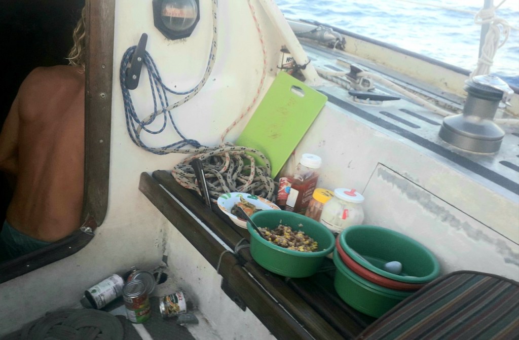 Mostly our thoughts and conversations were about food. Maybe because we were always worried about it and most of our daily habits were focused on food. We had to check it every day especially as we had a huge fight with cockroaches on Friendship. And possibly as nothing else really happened, food made a delightful difference during a long day. We started to discuss what we will have next as soon as we had finished our meals. We dreamed about dishes we would loved to have, but couldn’t. Even little changes on the menu were celebrated like Christmas dinner. Although cooking was a tricky thing to do on a heeling boat we were quite creative and didn’t balk at challenging dishes like German Spätzle and self-made gnocchi even at 5 knots. When we finally caught three fish within an hour, that was a big moment. „No haut cuisine“ as Elo resumeed but a change on the menu and a moment of success that we had been trying in weeks.