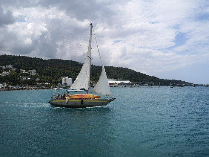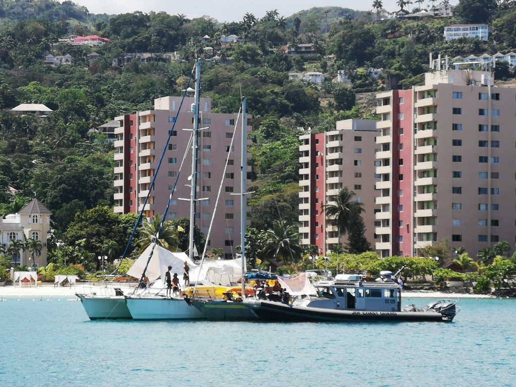 It came differently. The next morning we got visited by the coast guard. But they weren’t the problem, they were, in fact, quite understanding and helpful. After recording all our documents they promised us five days for resting and resupply and even sending the quarantine to check on us. I wasn’t the only one thinking about leaving on Jamaica. But a small inconspicuous guy on the beach thwarted our dreams. Brought to us on a Marine Police boat he had the power to send us away. Although we had at that time already trouble with a breaking shroud that supports the mast nor enough food nor water to continue sailing for an unknown destination. It didn’t help. Coming back a little later to hand over couple of bags from the Red Cross with some 25ml water bottles and food, he forcefully insisted in our instantaneous departure. That was Jamaica. That was the island of Bob Marley I always had dreamed of.