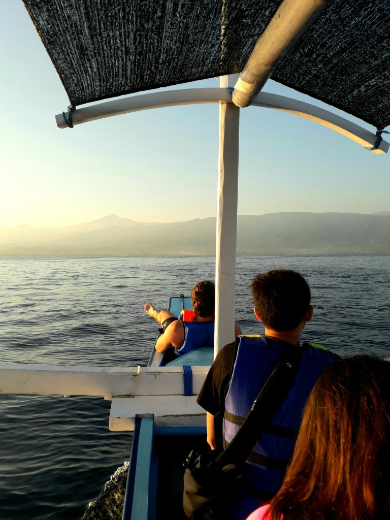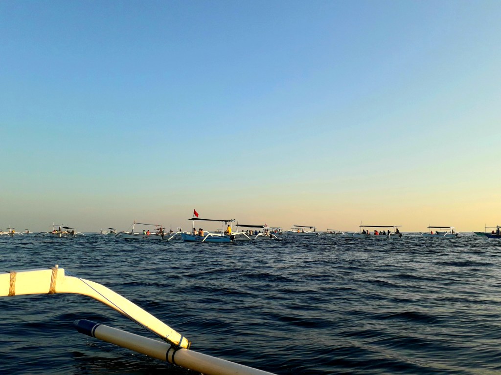 Noch vor Sonnenaufgang schwappen wir über das wellensanfte Wasser hinaus aufs Meer. Die Fahrt dauert vielleicht 20 Minuten. So genau weiß ich das nicht – ich habe mein Handy noch in der Sicherheit der Drybag gelassen.