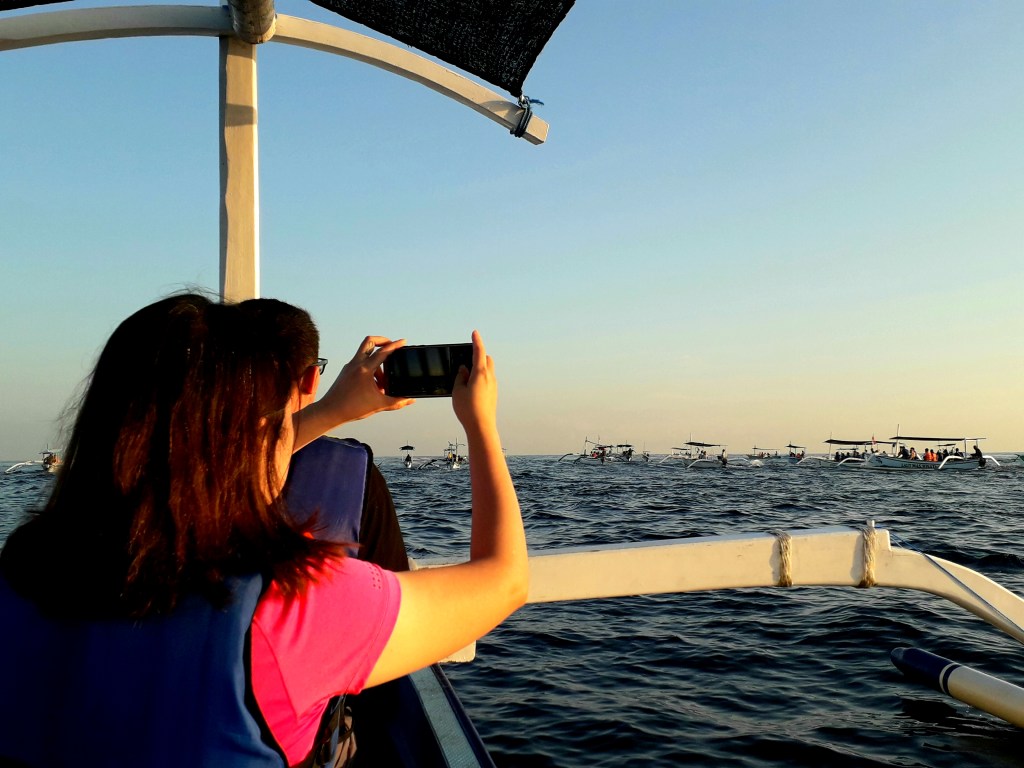 Doch die Gäste sind ganz entzückt bei dem ersten wolkendurchbrechenden Sonnenlicht und zücken ihre Handys und Kameras, um den schönen Moment in Mutternatur festzuhalten. Sonnenaufgang auf dem Rücken des Meeres war schließlich mitgebucht.