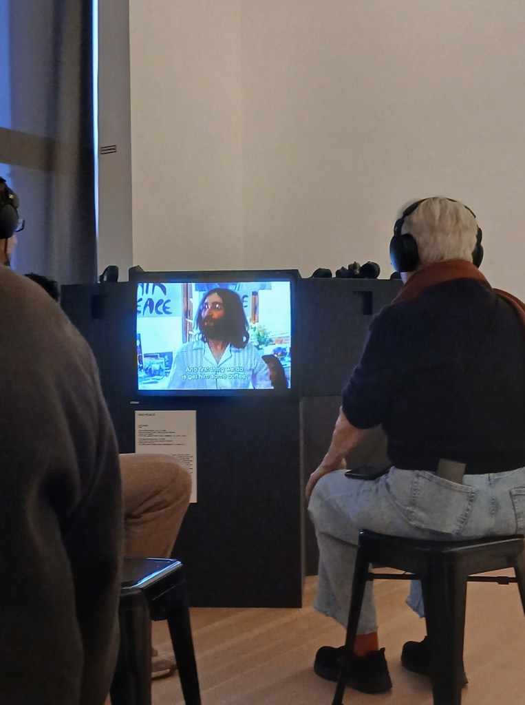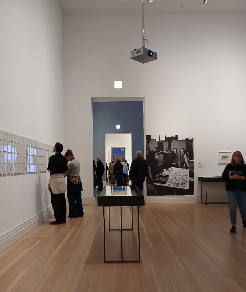 Dabei ließe sich natürlich, ganz ketzerisch fragen, ob Ono denn nun überhaupt erfolgreich war, oder insgesamt eigentlich gescheitert ist… Angesichts der anhaltenden Kriege in der Ukraine und in Gaza, despotischen Herrschenden, die gar nicht an friedlichen Lösungen interessiert sind, wirkt es fast wie Hohn, dass im Atrium des Gropius Baus großformatig das Plakat prangt „Peace is Power“. Wem wird es eigentlich entgegengehalten? Ist es noch eine Mahnung und Versicherung? Wie kann denn Frieden Macht sein, wenn wir ihn nicht erreichen?