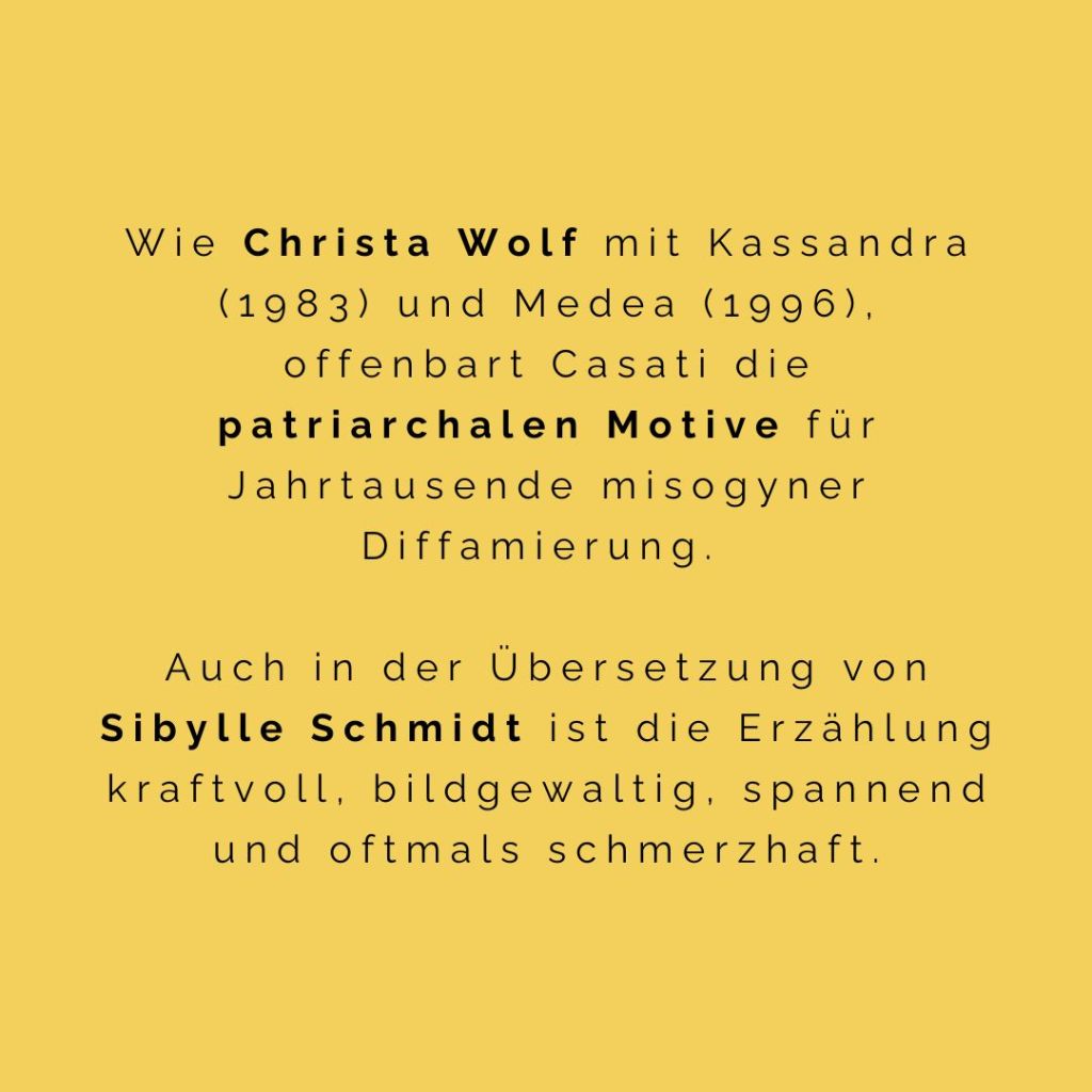 Costanza Casati wurde 1995 in Texas geboren und wuchs in einem Dorf in Norditalien auf. Sie studierte Altgriechisch und antike griechische Literatur an einem klassischen italienischen Liceo. Anschließend lebte sie fünf Jahre lang in England, wo sie das Warwick Writing Program absolvierte. »Klytämnestra« ist das Romandebüt der Journalistin und Drehbuchautorin.